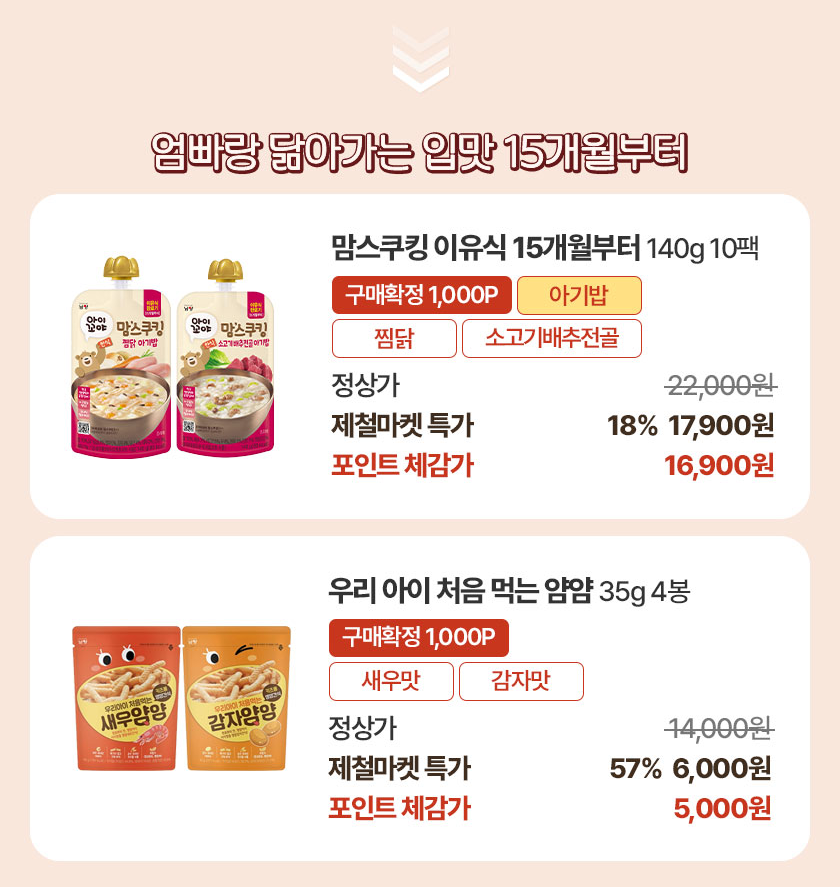 [~76%] 남양 유아식 추가혜택, 월령맞춤 제철마켓!