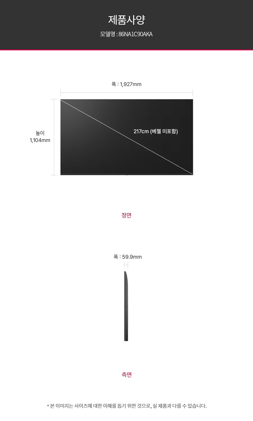 | 화면사양 (크기, 해상도, 화면비율 등) | 상세 설명 참조 |