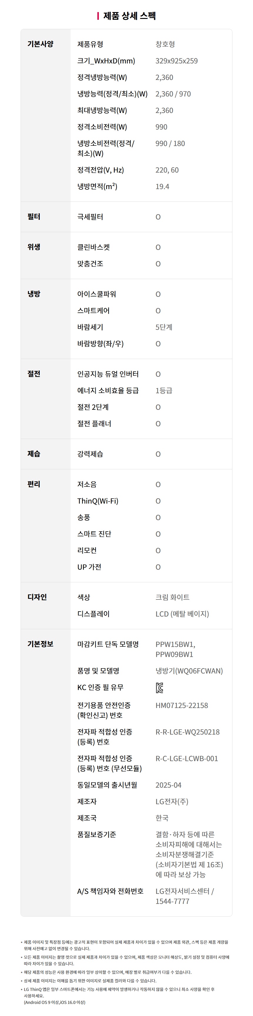 선택 : ★신세계상품권8만원★[임직원전용] LG 휘센 오브제컬렉션 엣지 창호형 에어컨 (연장키트 90cm) 마감키트 WQ06FCWU901