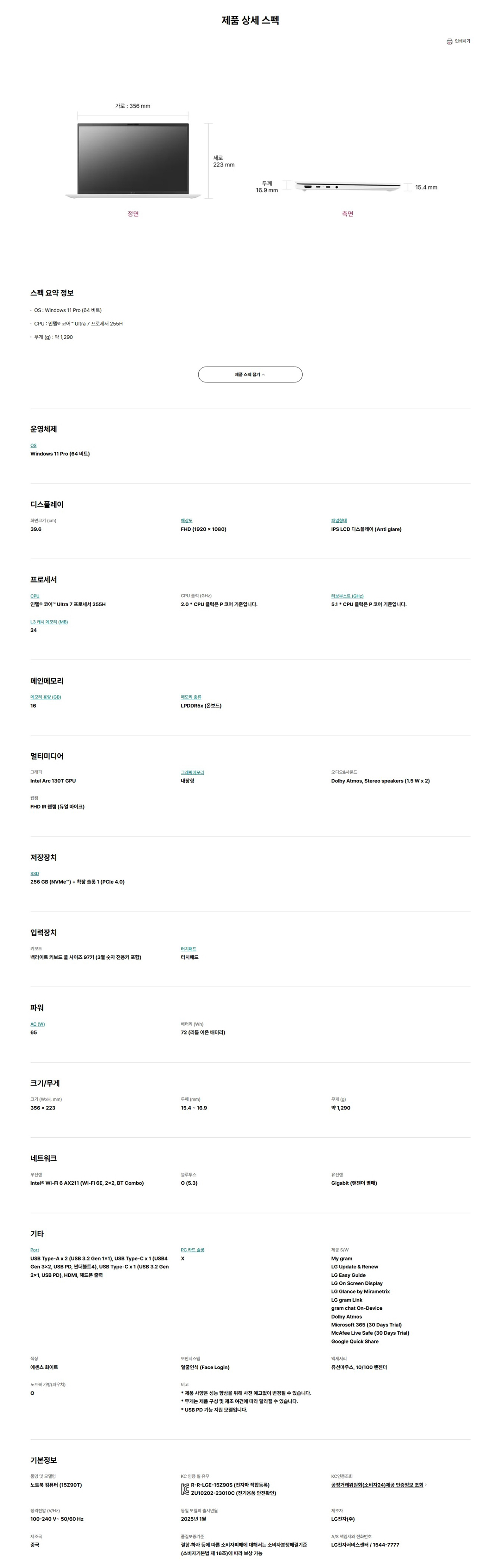 선택 : ★신세계상품권10만원★[임직원전용] LG 그램 AI 15Z90T-G.AP76ML